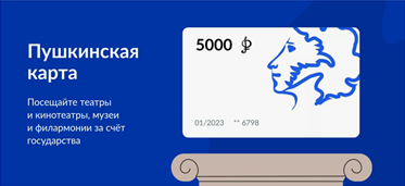 Пушкинская карта — это государственная всероссийская программа для популяризации культуры среди подростков и молодых людей в возрасте от 14 до 22 лет. Возрастной ценз с 14 лет объясняется тем, что для оформления карты человек должен иметь паспорт РФ и аккаунт на портале «Госуслуги». Каждый год государство переводит на счет карты сумму денег, в 2024 году это 5000 рублей. Деньги можно потратить на посещение культурных мероприятий: выставок, спектаклей, кинопоказов и др.